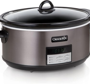 Crock-Pot Large 8-Quart Programmable Slow Cooker with Auto Warm Setting Black Stainless Steel